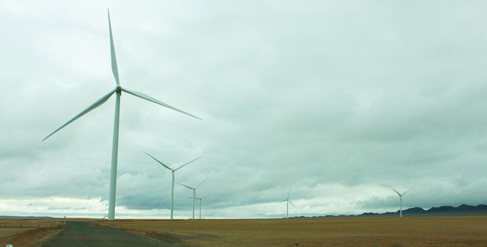Шөнө болсон ч салхины эрч буурсангүй. Нэмээд бороо шаагиж эхэллээ. Үе үе гялалзах аянга нь тэнгэрийн ягаан хаяаг зүсэн газарт буух гэрэлт зурвас мэт харагдана. Аянга цахих тоолонд салхин турбины дүрс сүүдэртэн харагдаж, байгалийн үзэгдэл болон хүний бүтээлийн хооронд тэмцэл өрнөж байгаа мэт санагдах ажээ. Эрт галавын цагт Монголын говьд нутаглаж байсан үлэг гүрвэлүүдийн өлгийд өдгөө хүний гараар бүтсэн аварга том салхин турбинууд ажиллаж байна. Нийт 80 метр өндөр цамхаг, тус бүр нь 54 метр урт, найман тонн жинтэй гурван далбаа, бүхэлдээ 245 тонн жинтэй турбин генератор гэхээр аргагүй үлэмж том “эд” билээ.
