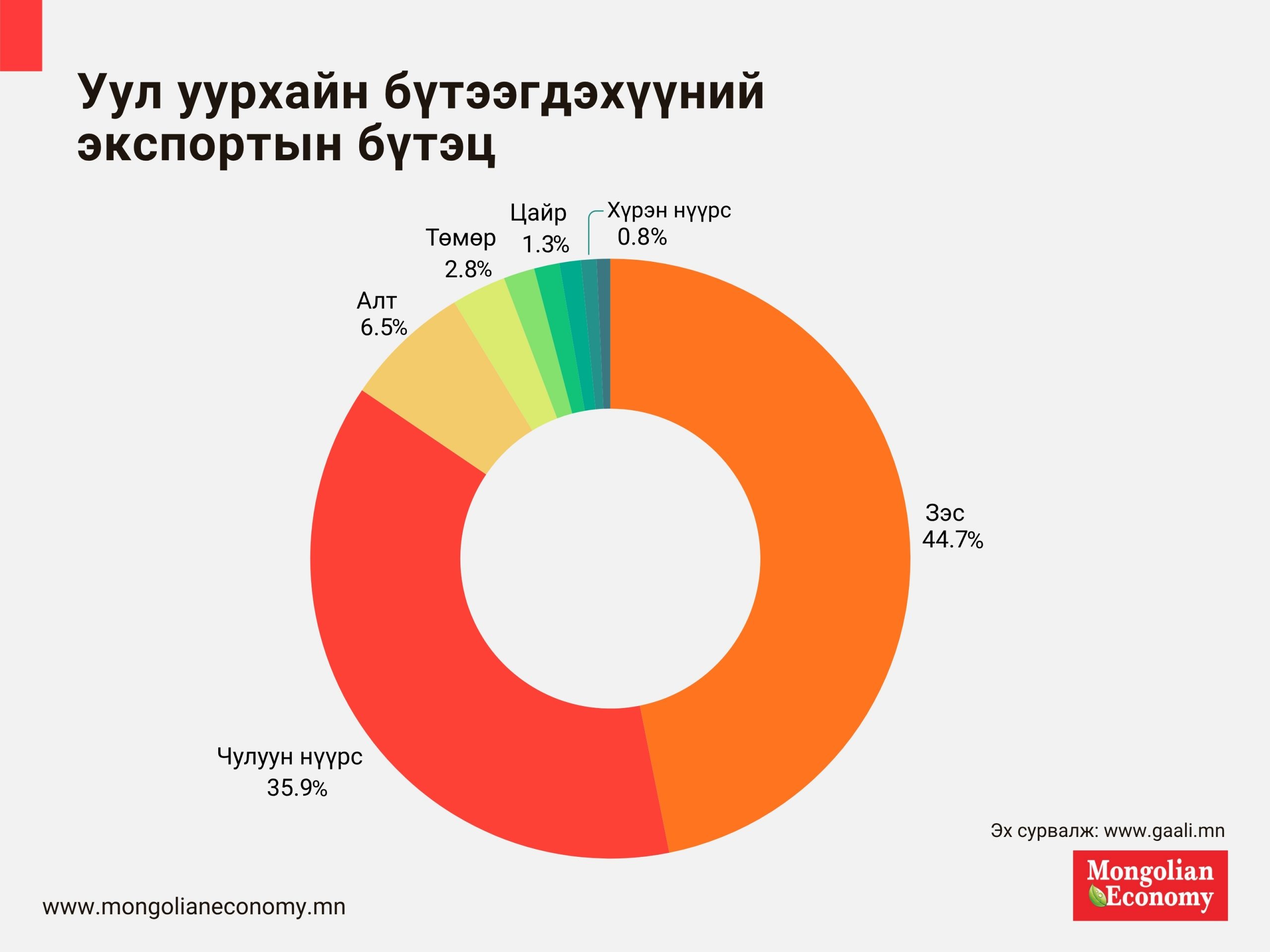Манай улсын экспортын гол бүтээгдэхүүн нь цахилгаан станцуудад түлдэг хүрэн нүүрс биш, Хятадын гангийн үйлдвэрлэлд ашиглагддаг чулуун болон коксжих нүүрс юм. Түүнчлэн уул уурхайн бүтээгдэхүүн, тэр дундаа хар тугалга, төмөр, зэс, цайрын баяжмал, түүхий нефть, чулуун болон хүрэн нүүрсийг 100 хувь БНХАУ руу экспортолж байна. Олон улсын эрчим хүчний агентлаг (IEA)-ийн мэдээллээр 2025 оны эхний найман сард коксжих нүүрсний үнэ дунджаар 186 ам.доллар байсан бөгөөд 2024 оны хоёрдугаар улирлаас эхлэн Хятад руу Монголын хийх нийлүүлэлт өссөнөөр зах зээлийн чангарлыг тодорхой хэмжээнд зөөллөсөн байна.